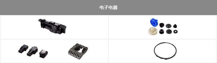 電纜箱、開關、壓力電飯煲蓋、冰箱門閉門器、OA/A熔點齒輪等。