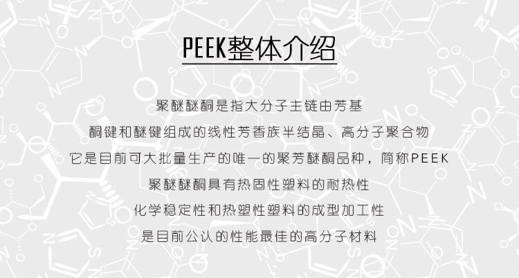 聚醚醚酮是指大分子主鏈由芳基、酮鍵和醚鍵組成的線性聚合物,它是目前可大批量生產的惟一的聚芳醚酮品種,英文名稱為polyetherether ketone,簡稱PEEK