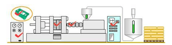 充模后的熔融樹脂通過模具表面時被冷卻、固化。在成形品從外表面開始冷卻固化(保壓、冷卻)的過程中, 根據設定的注射條件(保壓壓力/時間),當伴隨著PVT特性的體積變化(體積收縮)無法補償時, 成形品表面的樹脂由于內部的熔融樹脂的體積收縮而產生拉伸作用,結果形成了降低產品品位的凹痕。