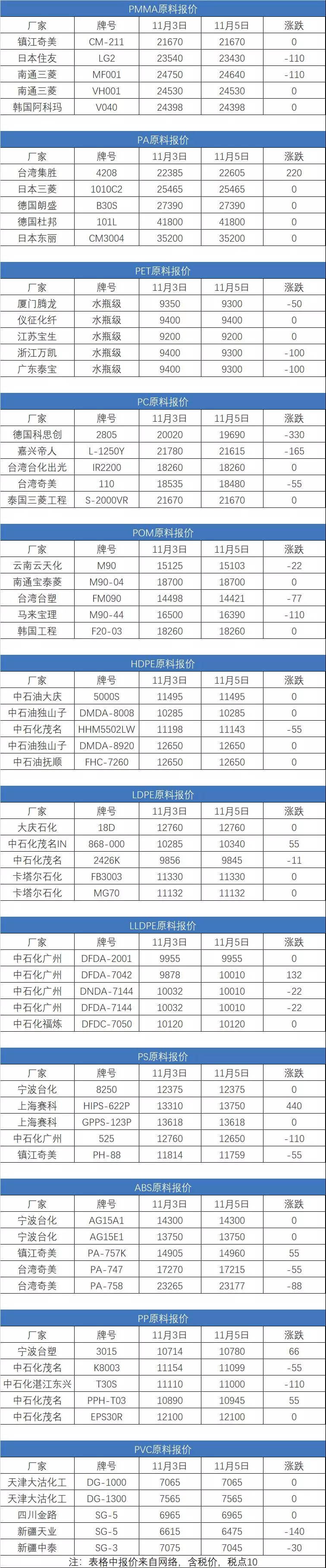 PE塑膠原料? 市場價格震蕩走軟為主,石化企業頻頻降價,市場偏空,下游買漲不買跌,補倉意向不高。華南地區LLDPE價格參考在9550-10000元/噸。
