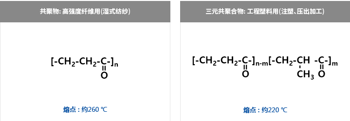 有一氧化碳和乙烯通過二元交替共聚合形成的高強度纖維用途共聚物(Copolymer)和作為工程塑料用途追加