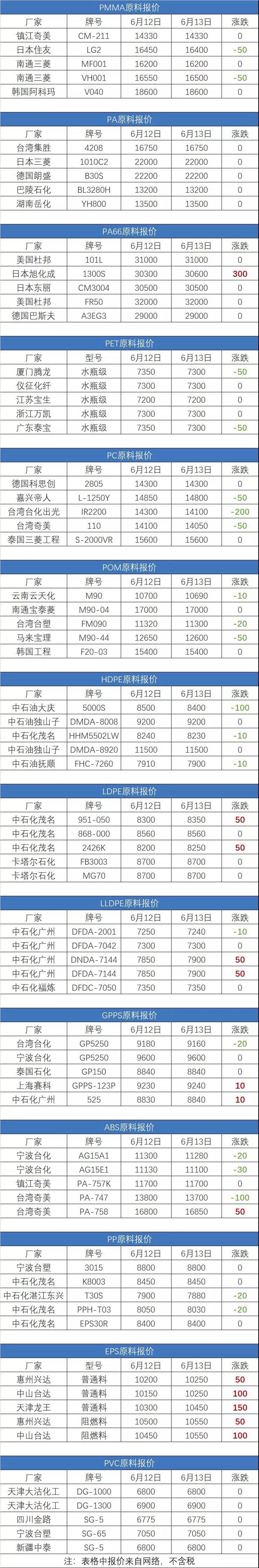 PE ? 國內裝置檢修情況正常,石化廠商出廠價格基本穩定,個別牌號價格有所下降,隨著PE成本面壓力的加大,貿易商開始試探上調價格,終端客戶依然是需求疲軟,LLDPE主流價格在7550-7850元/噸。(不含稅)