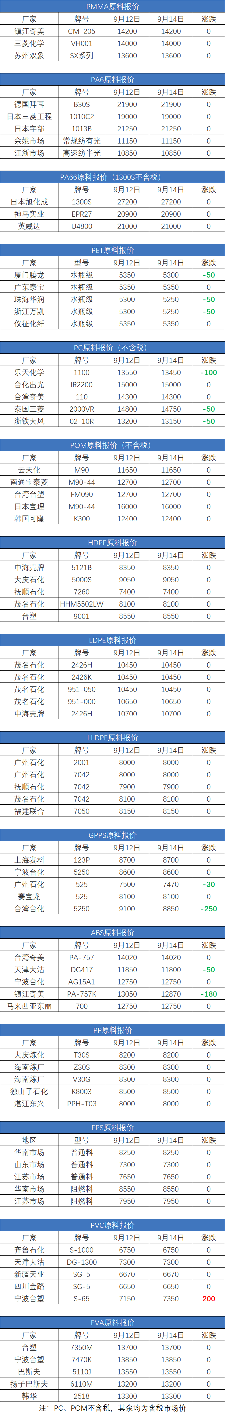 2020年9月14日塑膠原料實時報價