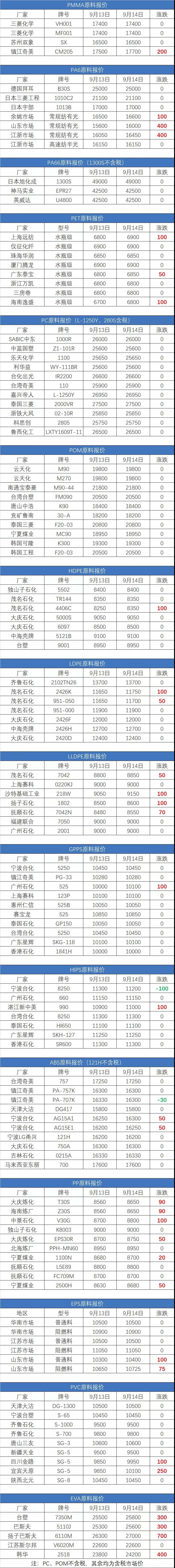 EPS塑膠原料:受成本提振,今日部分EPS企業報盤上調100元/噸。據悉,江蘇地區企業普通料現金出廠價在10250-10500元/噸;華南地區企業貨源普通料現金出廠價在10400-10800元/噸;山東地區企業貨源普通料現金出廠價在10200元/噸左右,實際成交以一單一談為主。市場整體反應平平,部分區域成交略有好轉,但放量有限。業者避險觀望情緒較濃,限制投機博弈量的釋放,多謹慎控制持倉量。短線EPS價格或將有探漲可能,華南地區普通料市場價格參考在10500-10500元/噸。(未含稅)