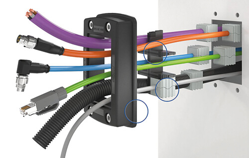 該系統還包括不同尺寸的密封件,用于包裹電纜、軟管和管線。CONTA-CLIP 和凱柏膠寶® 密切合作,優化了密封件設計,使其達到 IP 66 的防護要求。開槽元件可輕松安裝,精確包裹電纜,不會變形。