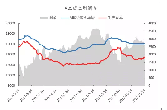 第四季度ABS下游家電產(chǎn)業(yè)整體需求不佳,部分廠家開(kāi)工率不足,原材料消化速度低于預(yù)期,ABS下游工廠消化能力縮水。部分大型改性ABS工廠開(kāi)工率在7-8成,中小企業(yè)開(kāi)工率在5-6成不等。這些企業(yè)多是家電、汽車(chē)、電腦、部分電子產(chǎn)品的原料配套生產(chǎn)企業(yè)。預(yù)計(jì),部分電子和汽車(chē)產(chǎn)品進(jìn)入12月后短線需求略好。
