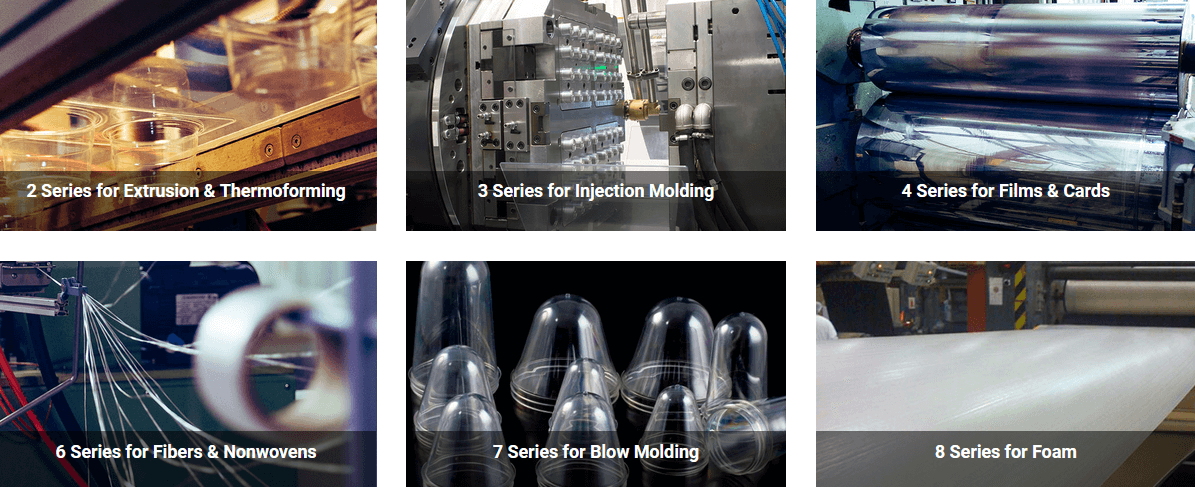 6系列 | 適用于機械拉伸短纖維或連續長絲的擠出,采用傳統的纖維紡紗和拉伸設備 | 擠出包裝;薄膜;層壓板;袋子;流延薄膜 | |