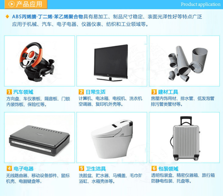 用途:電冰箱部件(內箱和門拉手)、盥洗用品.