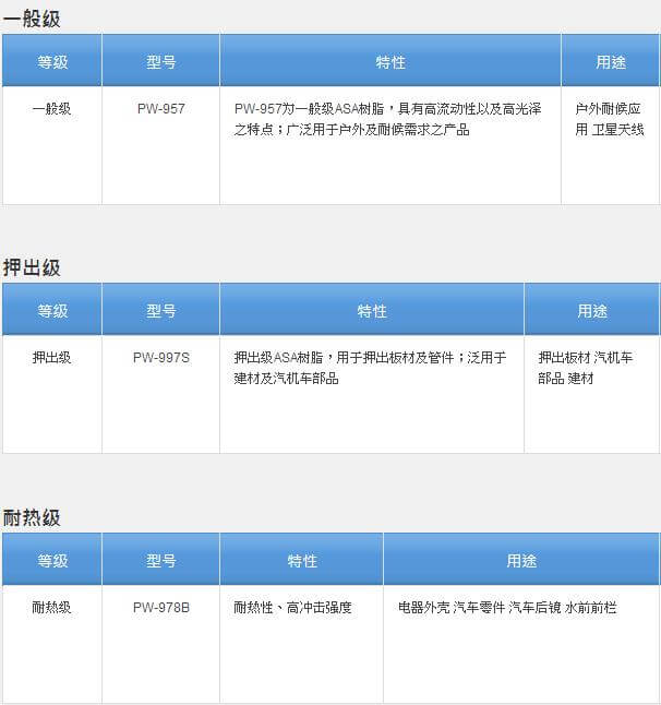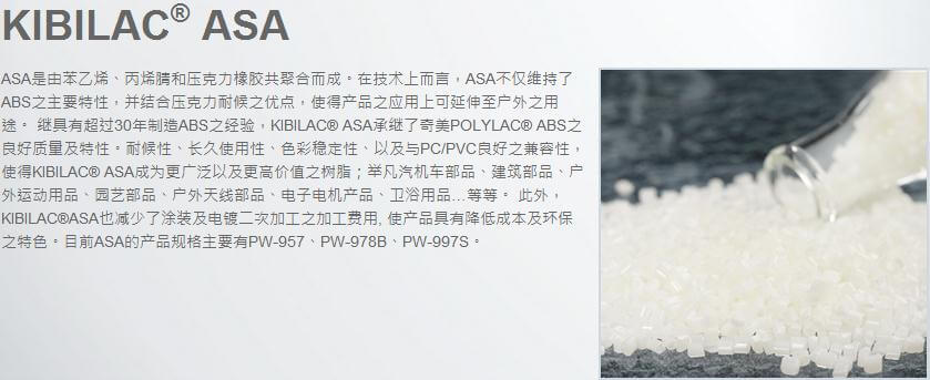 ASA的優(yōu)點 1、ASA具有良好的機(jī)械物理性能 ASA和ABS的結(jié)構(gòu)相似,由丙烯腈和丁二烯橡膠組成,其保留了ABS作為工程塑料所具有的極佳的機(jī)械物理性能。 2、ASA具有很強(qiáng)的耐候性 高分子聚合